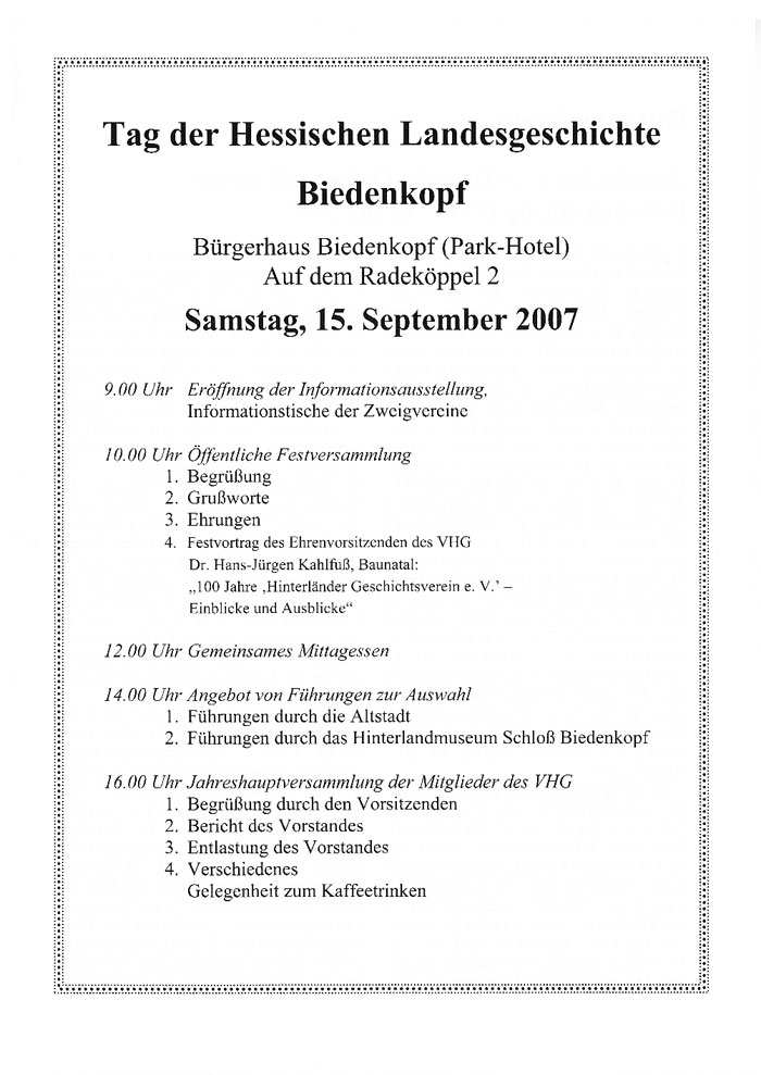 2. Führungen durch das Hinterlandmuseum Schloß Biedenkopf 16.00 Uhr Jahreshauptversammlung der Mitglieder des WG