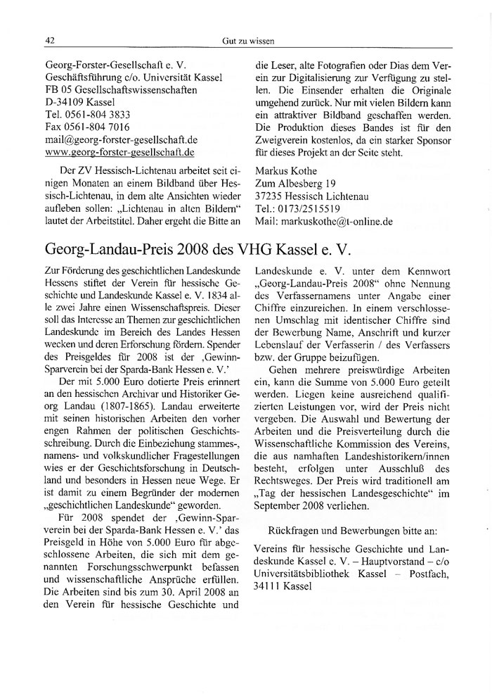 Georg-Landau-Preis 2008 des VHG Kassel e. V.
