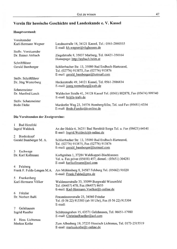 Verein für hessische Geschichte und Landeskunde e. V. Kassel Hauptvorstand: