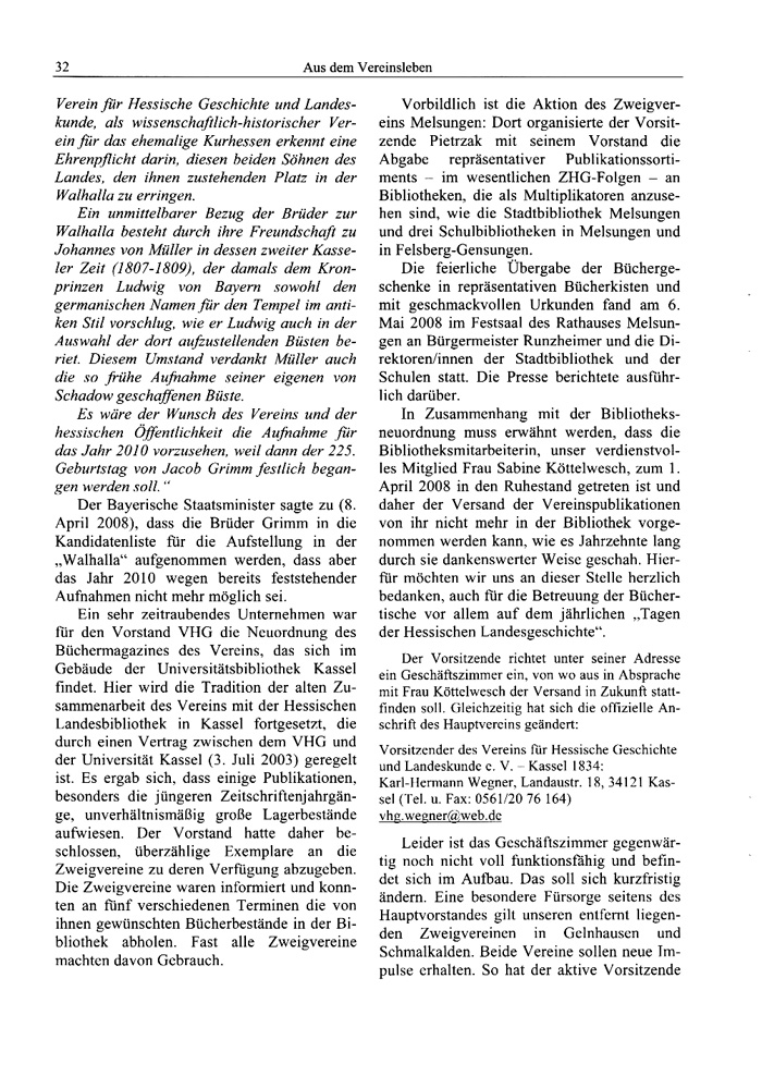 Vorsitzender des Vereins für Hessische Geschichte und Landeskunde e. V. -Kassel 1834: Karl-Hermann Wegner, Landaustr. 18, 34121 Kassel (Tel. u. Fax: 0561/20 76 164) vhg.wegner@web.de