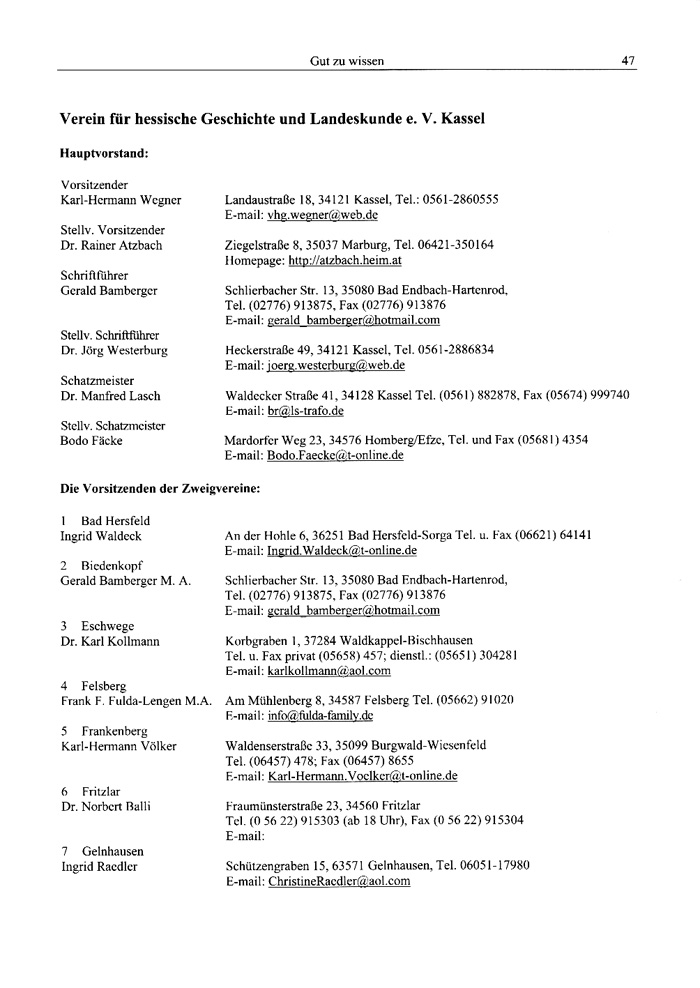 Verein für hessische Geschichte und Landeskunde e. V. Kassel Hauptvorstand:
