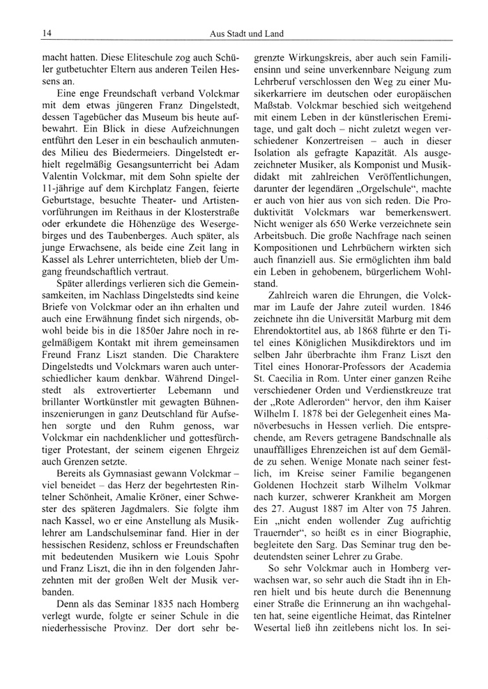 So sehr Volckmar auch in Homberg verwachsen war, so sehr auch die Stadt ihn in Ehren hielt und bis heute durch die Benennung einer Straße die Erinnerung an ihn wachgehalten hat, seine eigentliche Heimat, das Rintelner Wesertal ließ ihn zeitlebens nicht los. In sei-