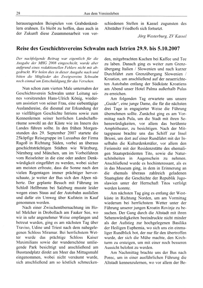 Reise des Geschichtsvereins Schwalm nach Istrien 29.9. bis 5.10.2007