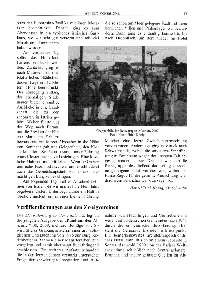 Der ZV Rotenburg an der Fulda hat legt in der jüngsten Ausgabe des „Rund um den Alheimer" 30, 2009, mehrere Beiträge vor. So wird älteres Grabungsmaterial einer archäologischen Untersuchung von 1976 zur Burg Rodenberg im Rahmen einer Magisterarbeit nun vorgelegt und damit überhaupt fruchtbringend erschlossen. Ein weiterer Aufsatz behandelt die in den letzten Jahren verstärkt untersuchte Frage der schwierigen Integration und Auf