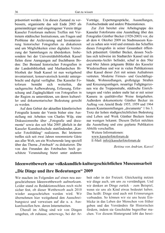 präsentiert werden. Um diesen Zustand zu verbessern, organisierte das seit Ende 2005 als gemeinnütziger und eingetragener Verein tätige Kasseler Fotoforum mehrere Treffen mit Vertretern städtischer Institutionen, um Fragen und Probleme der Archivierung und Inventarisierung historischer Fotografien zu diskutieren und um Möglichkeiten einer digitalen Vernetzung der Sammlungen zu überdenken. Insbesondere bei der Universitätsbibliothek Kassel fielen diese Anregungen auf fruchtbaren Boden: Der Bestand historischer Fotografien in der Landesbibliothek und Murhardschen Bibliothek der Stadt Kassel ist nun weitgehend inventarisiert, konservatorisch korrekt untergebracht und digital verfügbar. Das Kasseler Fotoforum bemüht sich weiterhin, die sachgerechte Aufbewahrung, Erfassung, Erforschung und Zugänglichkeit von Fotografien in der Region zu unterstützen, um deren kultureller und dokumentarischer Bedeutung gerecht zu werden.