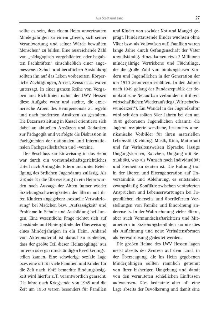 sollte es sein, den einem Heim anvertrauten Minderjährigen zu einem „freien, sich seiner Verantwortung und seiner Würde bewußten Menschen“ zu bilden. Eine ausreichende Zahl von „pädagogisch vorgebildeten oder begabten Fachkräften“ einschließlich einer angemessenen Schul- und beruflichen Ausbildung sollten ihn auf das Leben vorbereiten. Körperliche Züchtigungen, Arrest, Zensur u. a. waren untersagt. In einer ganzen Reihe von Vorgaben und Richtlinien nahm der LWV Hessen diese Aufgabe wahr und suchte, die erzieherische Arbeit des Heimpersonals zu regeln und nach modernen Ansätzen zu gestalten. Die Dezernatsleitung in Kassel orientierte sich dabei an aktuellen Ansätzen und Gedanken zur Pädagogik und verfolgte die Diskussion in Fachgremien der nationalen und internationalen Fachgesellschaften und -vereine.