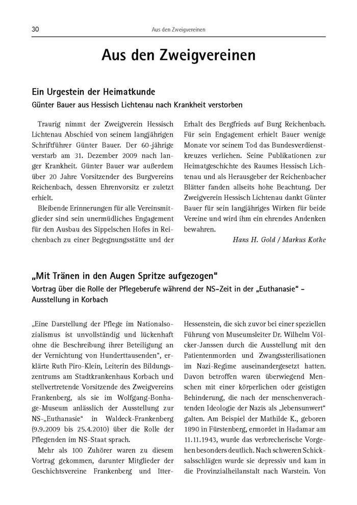 Traurig nimmt der Zweigverein Hessisch Lichtenau Abschied von seinem langjährigen Schriftführer Günter Bauer. Der 60-jährige verstarb am 31. Dezember 2009 nach langer Krankheit. Günter Bauer war außerdem über 20 Jahre Vorsitzender des Burgvereins Reichenbach, dessen Ehrenvorsitz er zuletzt erhielt.