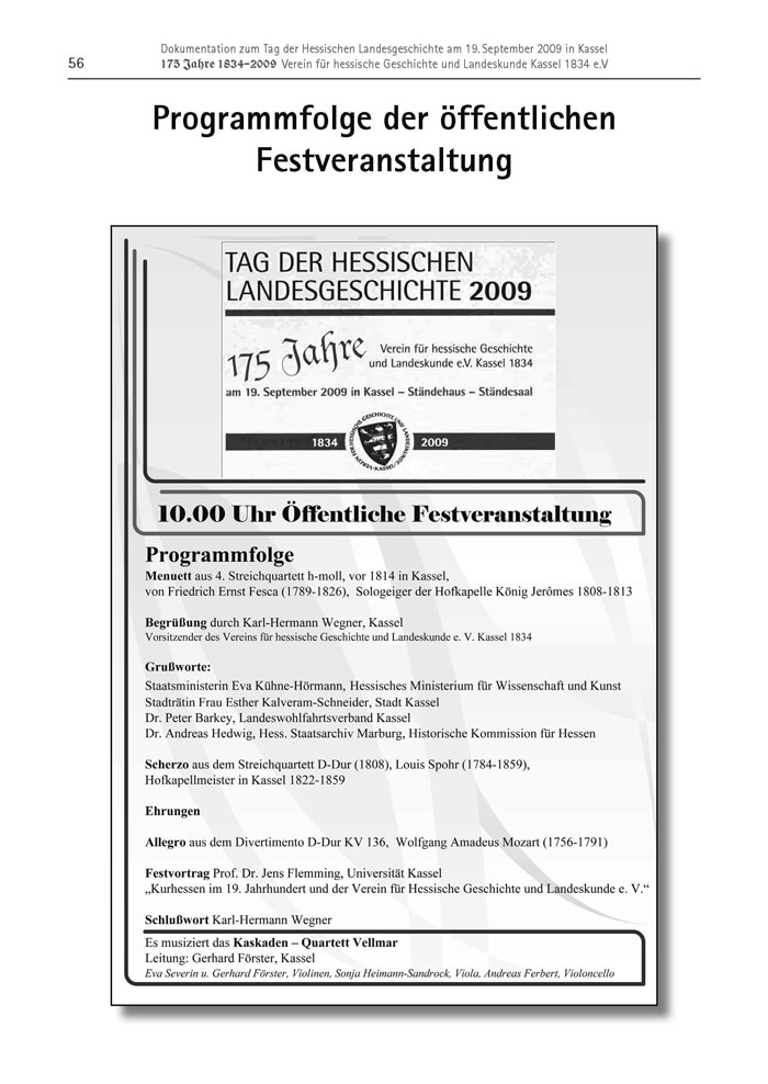 Dokumentation zum Tag der Hessischen Landesgeschichte am 19. September 2009 in Kassel 175 Jahre 1834−2009 Verein für hessische Geschichte und Landeskunde Kassel 1834 e.V