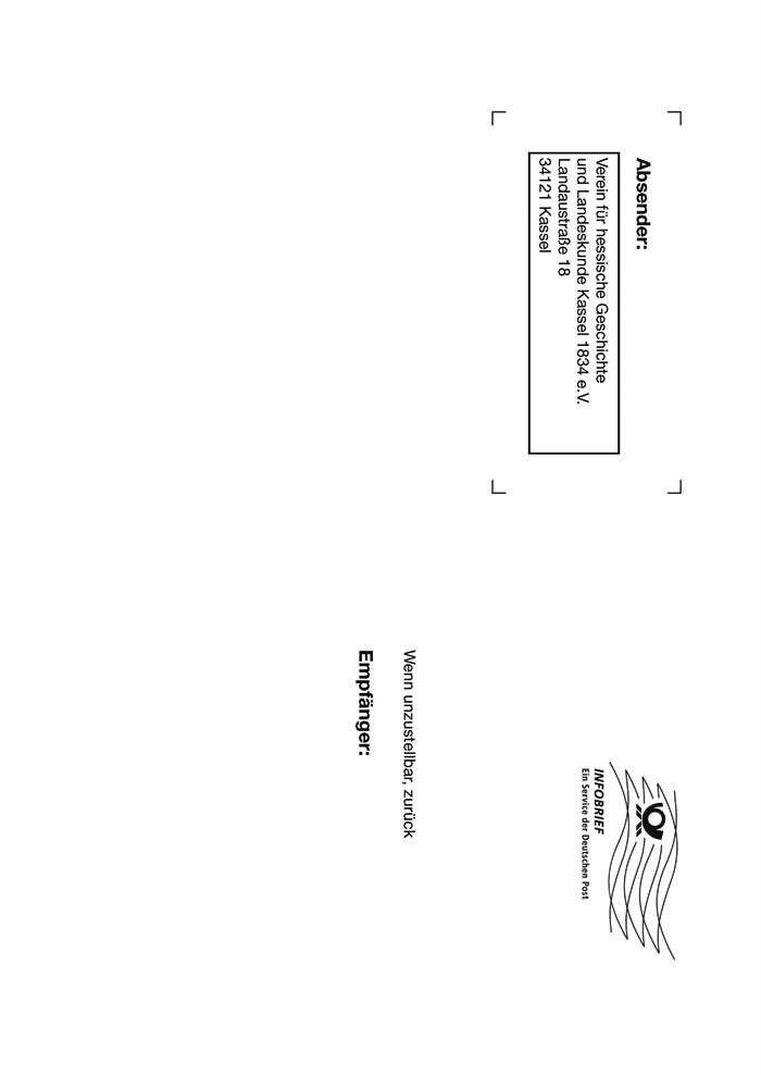 Absender: Verein für hessische Geschichte und Landeskunde Kassel 1834 e.V. Landaustraße 18 34121 Kassel