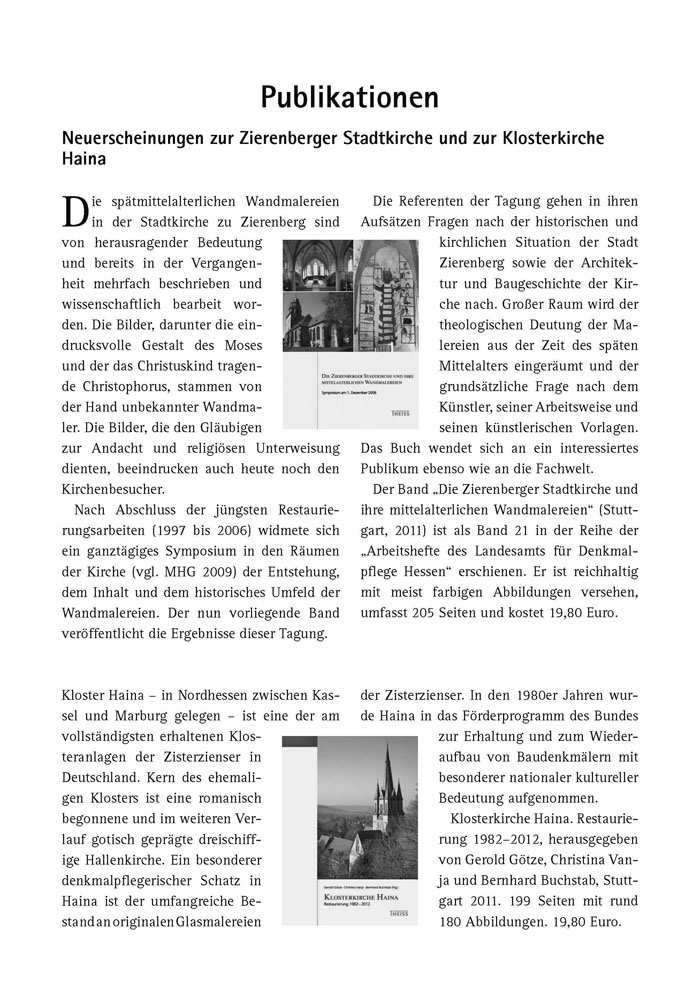 Neuerscheinungen zur Zierenberger Stadtkirche und zur Klosterkirche Haina