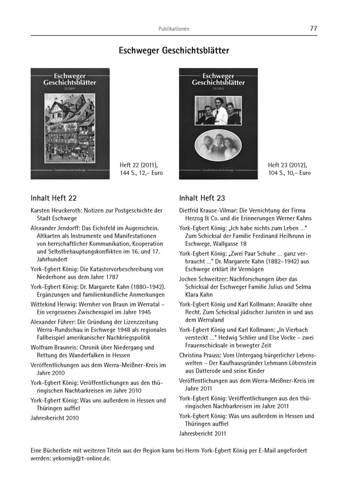 Eine Bücherliste mit weiteren Titeln aus der Region kann bei Herrn York-Egbert König per E-Mail angefordert werden: yekoenig@t-online.de.