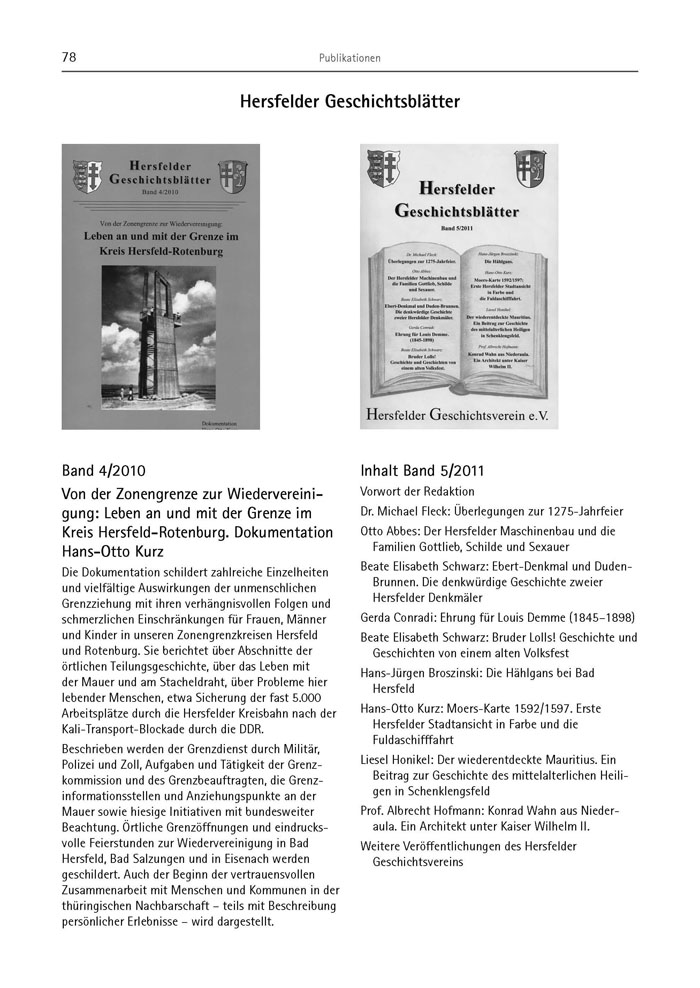 Weitere Veröffentlichungen des Hersfelder Geschichtsvereins