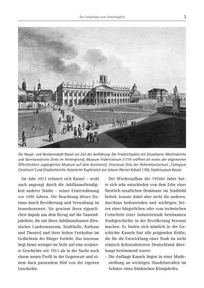 Der Wiederaufbau der 1950er Jahre hatte sich sehr entschieden von dem Erbe einer fürstlich-staatlichen Dominanz im Stadtbild befreit, konnte dabei aber nicht die anderen, durchaus bedeutenden und wichtigen Seiten einer bürgerlichen oder vom technischen Fortschritt einer Industriestadt bestimmten Stadtgeschichte in der Bevölkerung bewusst machen. Es finden sich nämlich in der Geschichte Kassels fast alle prägenden Kräfte, die für die Entwicklung einer Stadt im nicht römisch kolonialisierten Deutschland überhaupt bestimmend waren:
