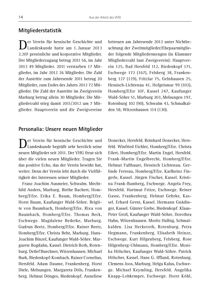 Der Verein für hessische Geschichte und Landeskunde begrüßt sehr herzlich seine neuen Mitglieder seit 2011. Der VHG freut sich über die vielen neuen Mitglieder. Tragen Sie das positive Echo, das der Verein bewirkt hat, weiter. Denn der Verein lebt durch die Vielfältigkeit der Interessen seiner Mitglieder.