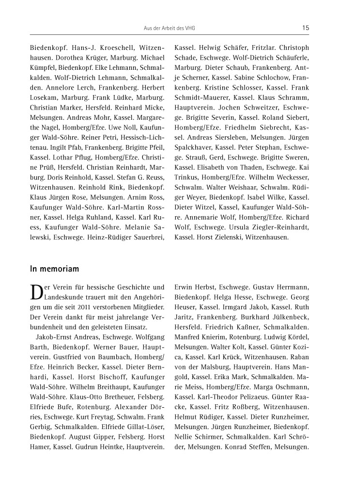Der Verein für hessische Geschichte und Landeskunde trauert mit den Angehörigen um die seit 2011 verstorbenen Mitglieder. Der Verein dankt für meist jahrelange Verbundenheit und den geleisteten Einsatz.