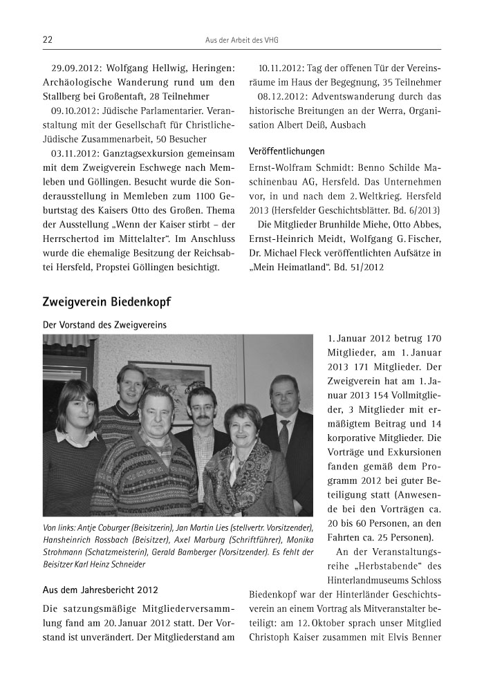 Die Mitglieder Brunhilde Miehe, Otto Abbes, Ernst-Heinrich Meidt, Wolfgang G. Fischer, Dr. Michael Fleck veröffentlichten Aufsätze in „Mein Heimatland“. Bd. 51/2012
