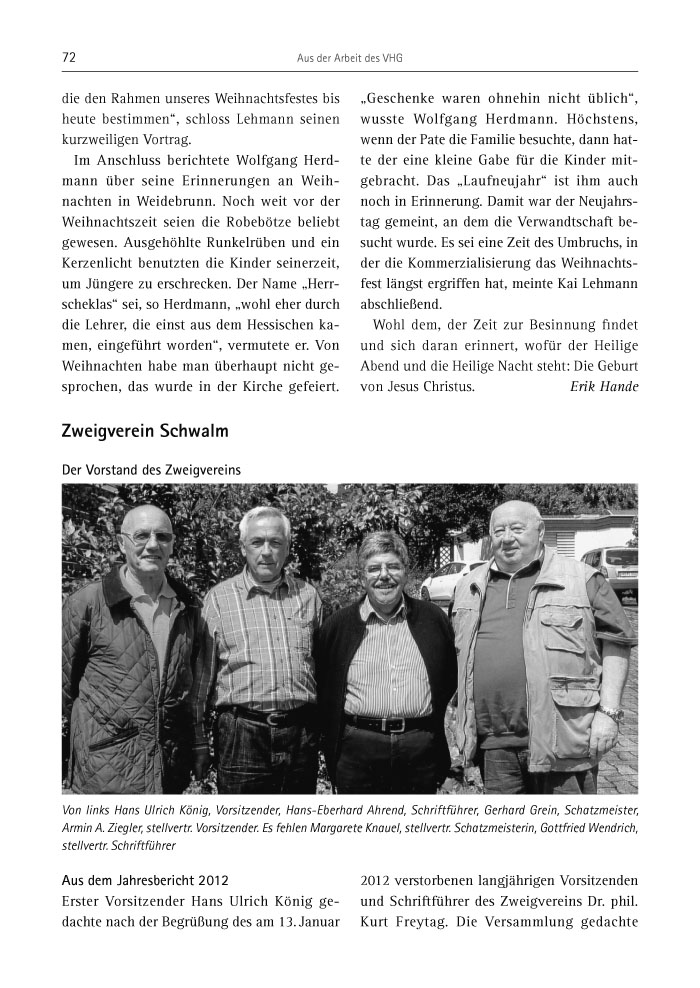 Erster Vorsitzender Hans Ulrich König gedachte nach der Begrüßung des am 13. Januar 2012 verstorbenen langjährigen Vorsitzenden und Schriftführer des Zweigvereins Dr. phil. Kurt Freytag. Die Versammlung gedachte