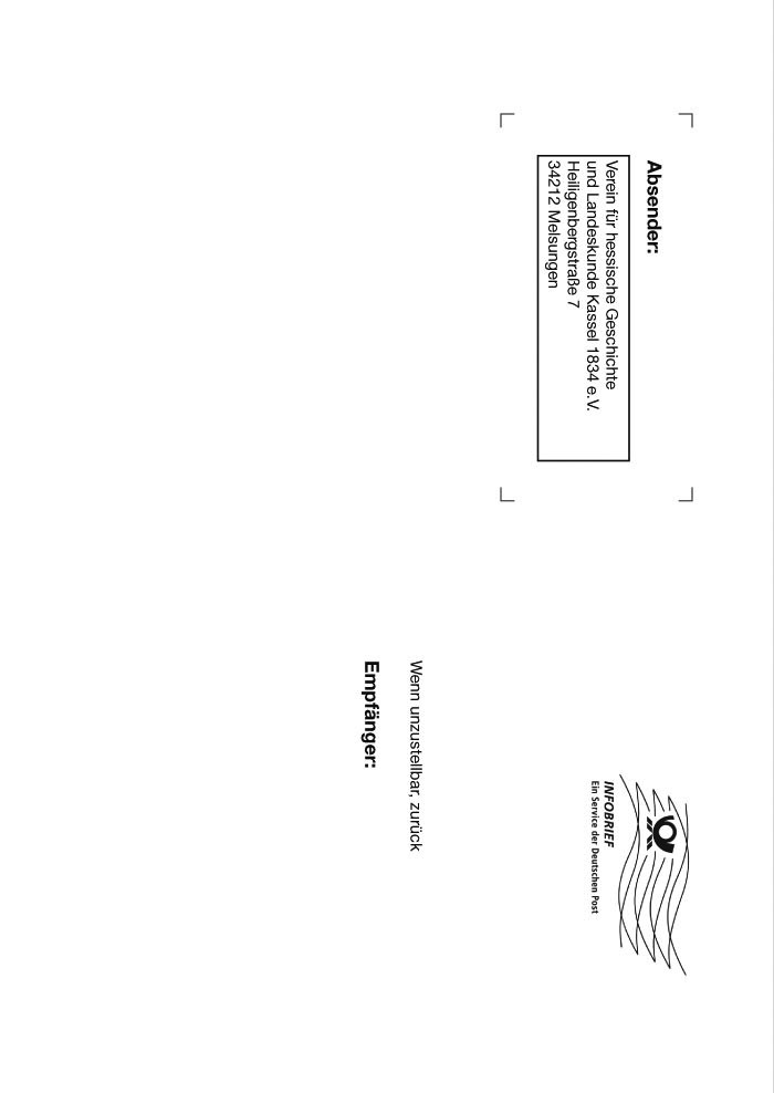 Absender: Verein für hessische Geschichte und Landeskunde Kassel 1834 e.V. Heiligenbergstraße 7 34212 Melsungen