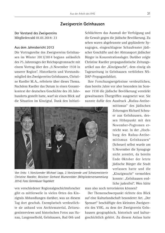 des VHG, zu dem der Zweigverein Gelnhausen