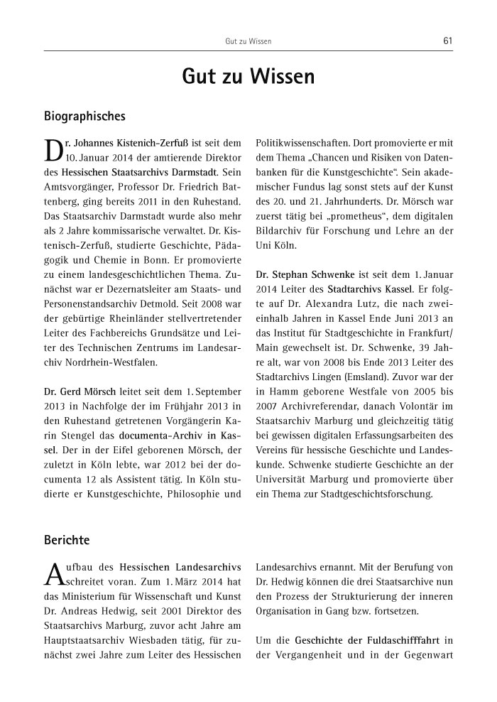 2014 Leiter des Stadtarchivs Kassel. Er folgte