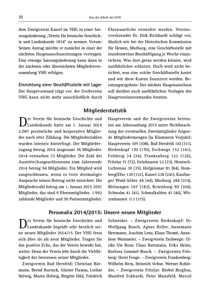 dem Zweigverein Kassel im VHG in einer Satzungsänderung