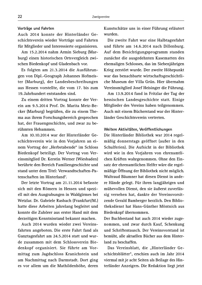 Das Vereinsblatt, die „Hinterländer Geschichtsblätter“,