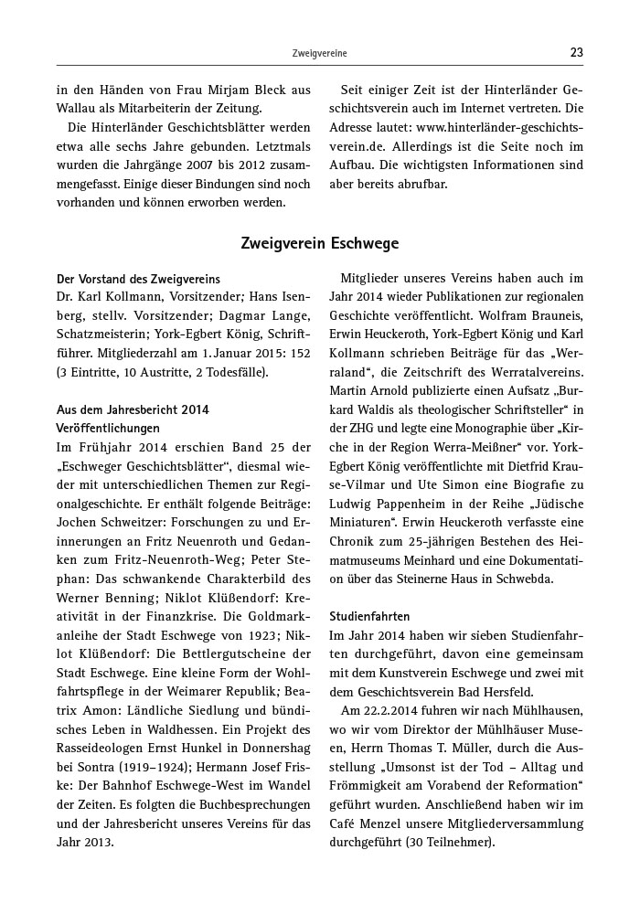 „Eschweger Geschichtsblätter“, diesmal wieder