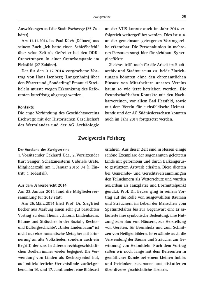 Mitgliederzahl am 1. Januar 2015: 34 (1 Eintritt,