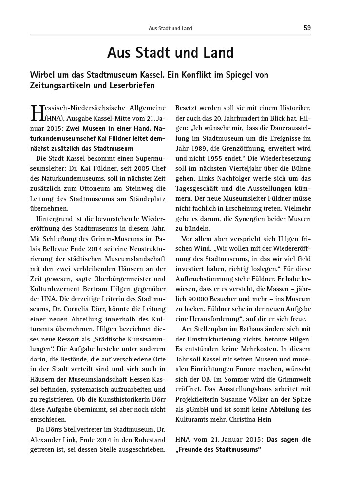 Wirbel um das Stadtmuseum Kassel. Ein Konflikt im Spiegel von