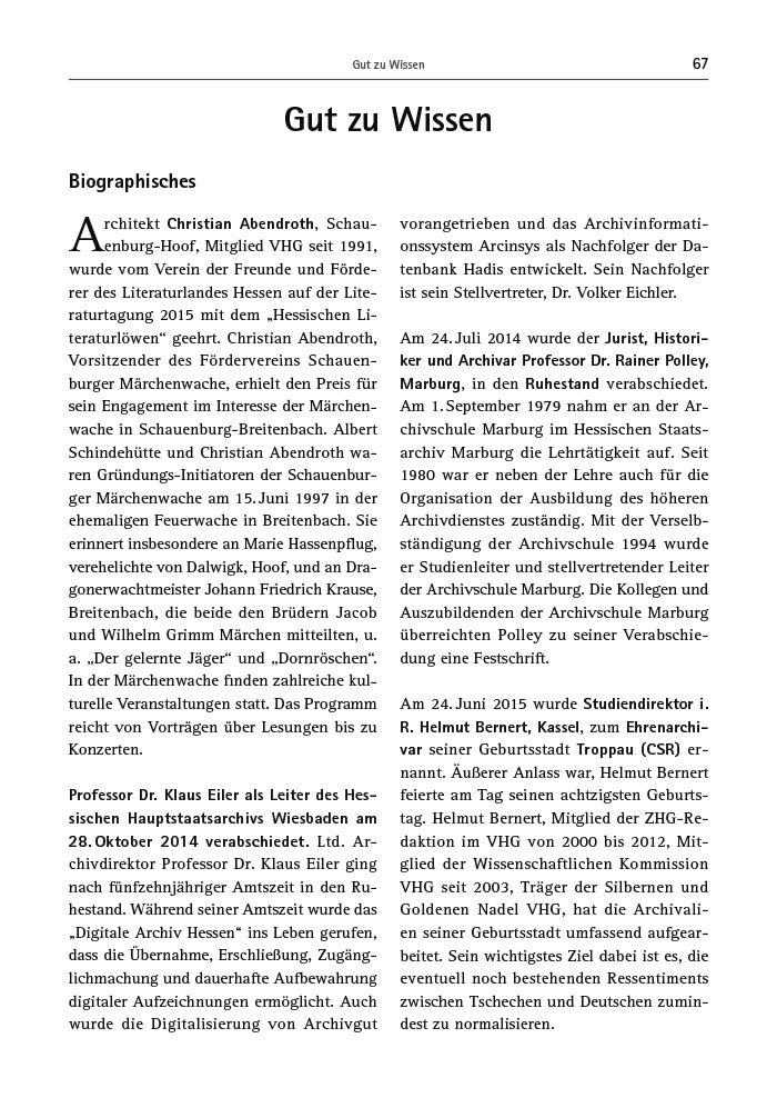 Helmut Bernert, Mitglied der ZHG-Redaktion