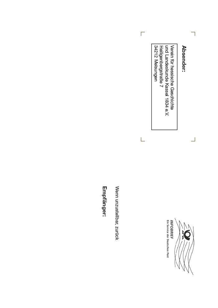 Absender: Verein für hessische Geschichte und Landeskunde Kassel 1834 e.V. Heiligenbergstraße 7 34212 Melsungen