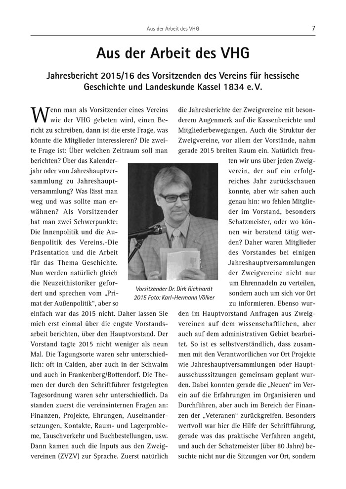 Jahresbericht 2015/16 des Vorsitzenden des Vereins für hessische