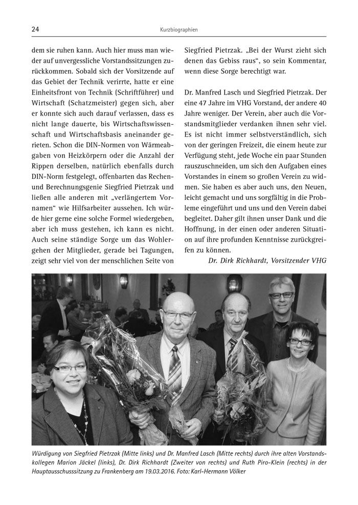 Würdigung von Siegfried Pietrzak (Mitte links) und Dr. Manfred Lasch (Mitte rechts) durch ihre alten Vorstandskollegen