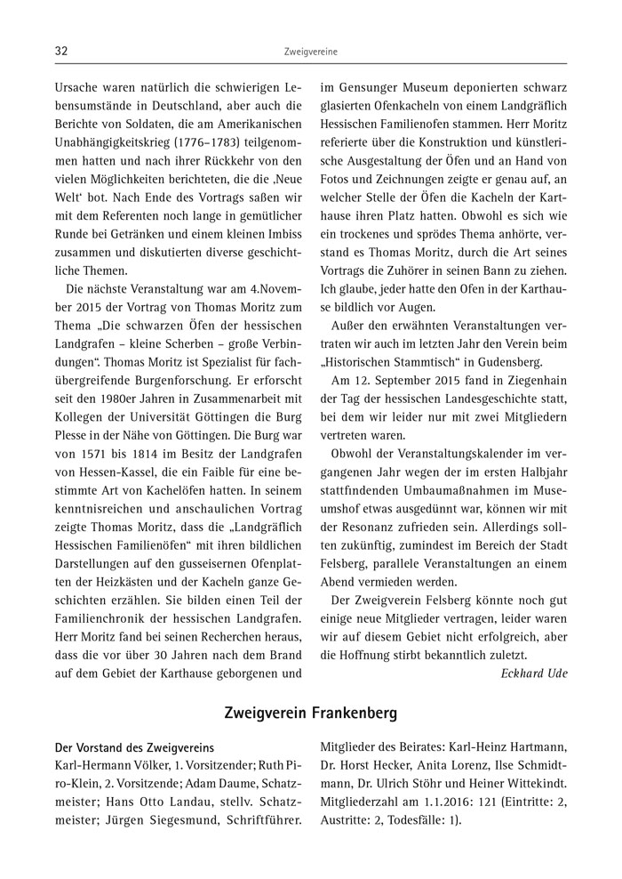 Mitgliederzahl am 1.1.2016: 121 (Eintritte: 2,