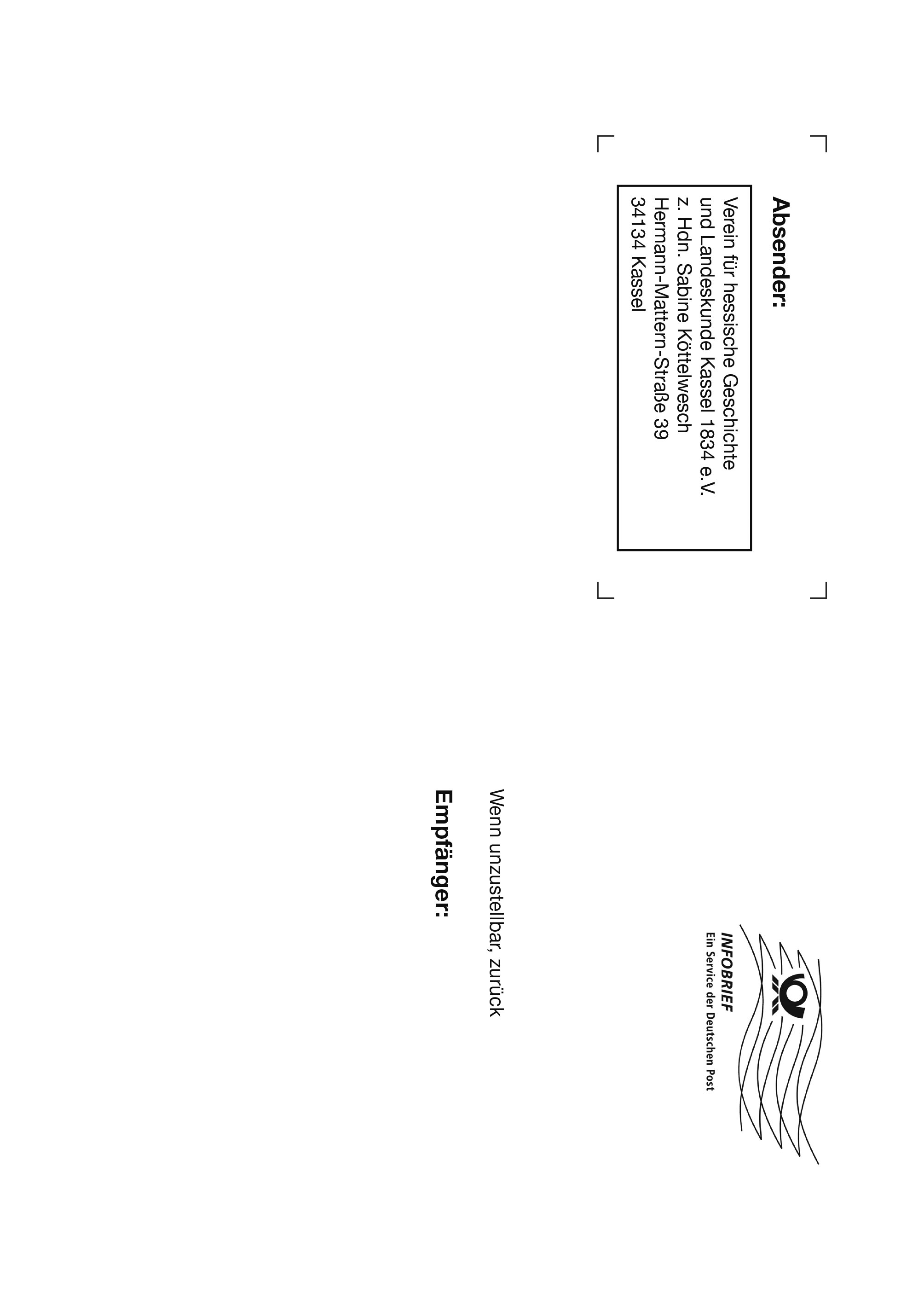 Absender: Verein für hessische Geschichte und Landeskunde Kassel 1834 e.V. z. Hdn. Sabine Köttelwesch Hermann-Mattern-Straße 39 34134 Kassel