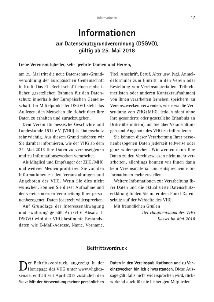 Landeskunde 1834 e.V. (VHG) ist Datenschutz