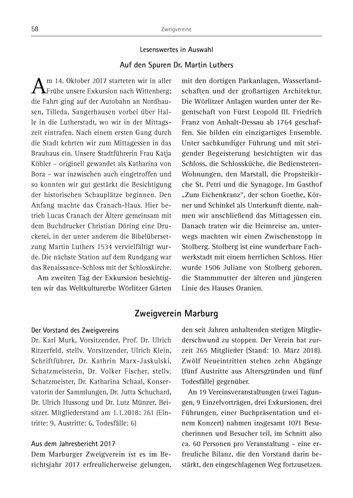 Dem Marburger Zweigverein ist es im Berichtsjahr