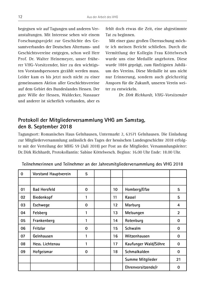 mit der Verteilung der MHG 59 (Juli 2018) per Post an die Mitglieder. Versammlungsleiter: