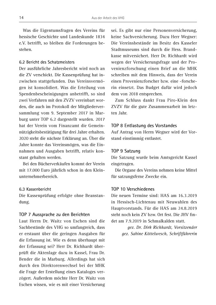 14 Aus der Arbeit des VHG
