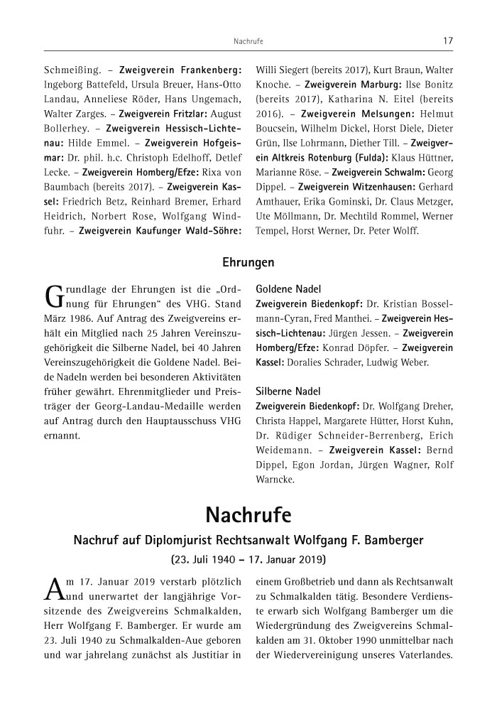 Baumbach (bereits 2017). – Zweigverein Kassel: