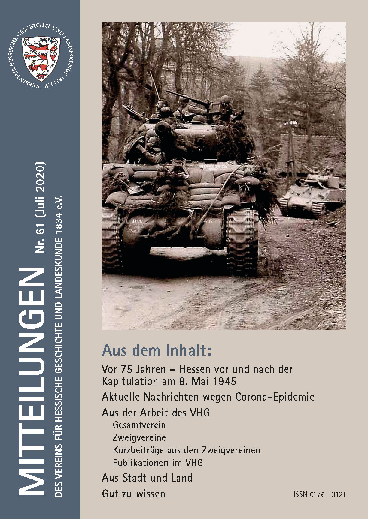 ISSN 0176 - 3121 MITTEILUNGEN Nr. 61 (Juli 2020) DES VEREINS FÜR HESSISCHE GESCHICHTE UND LANDESKUNDE 1834 e.V. VEREIN FÜR HESSISCHE GESCHICHTE UND LANDESKUNDE 1834 E.V. Aus dem Inhalt: Vor 75 Jahren – Hessen vor und nach der Kapitulation am 8. Mai 1945 Aktuelle Nachrichten wegen Corona-Epidemie Aus der Arbeit des VHG Gesamtverein Zweigvereine Kurzbeiträge aus den Zweigvereinen Publikationen im VHG Aus Stadt und Land Gut zu wissen