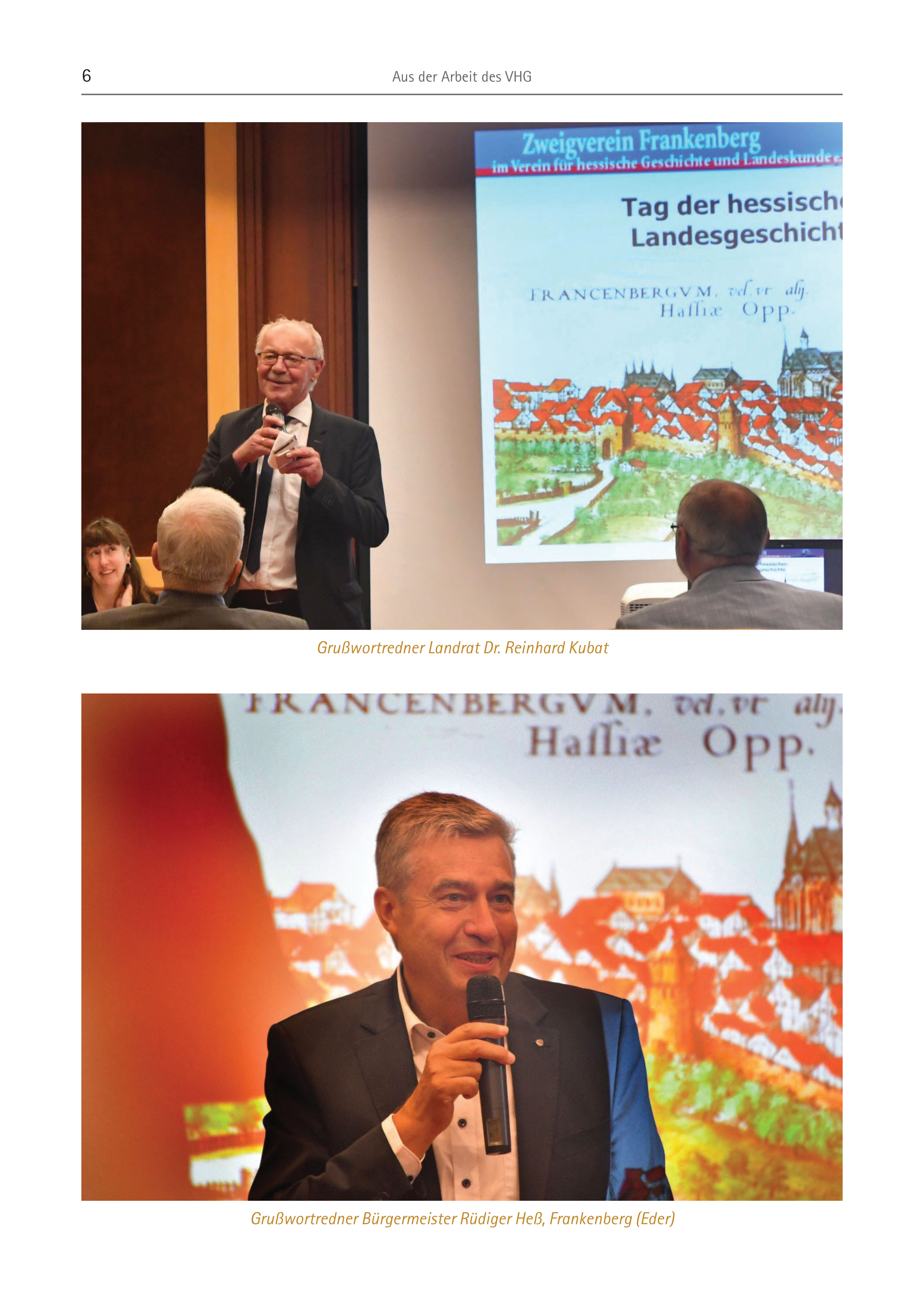 6 Aus der Arbeit des VHG Grußwortredner Bürgermeister Rüdiger Heß, Frankenberg (Eder) Grußwortredner Landrat Dr. Reinhard Kubat