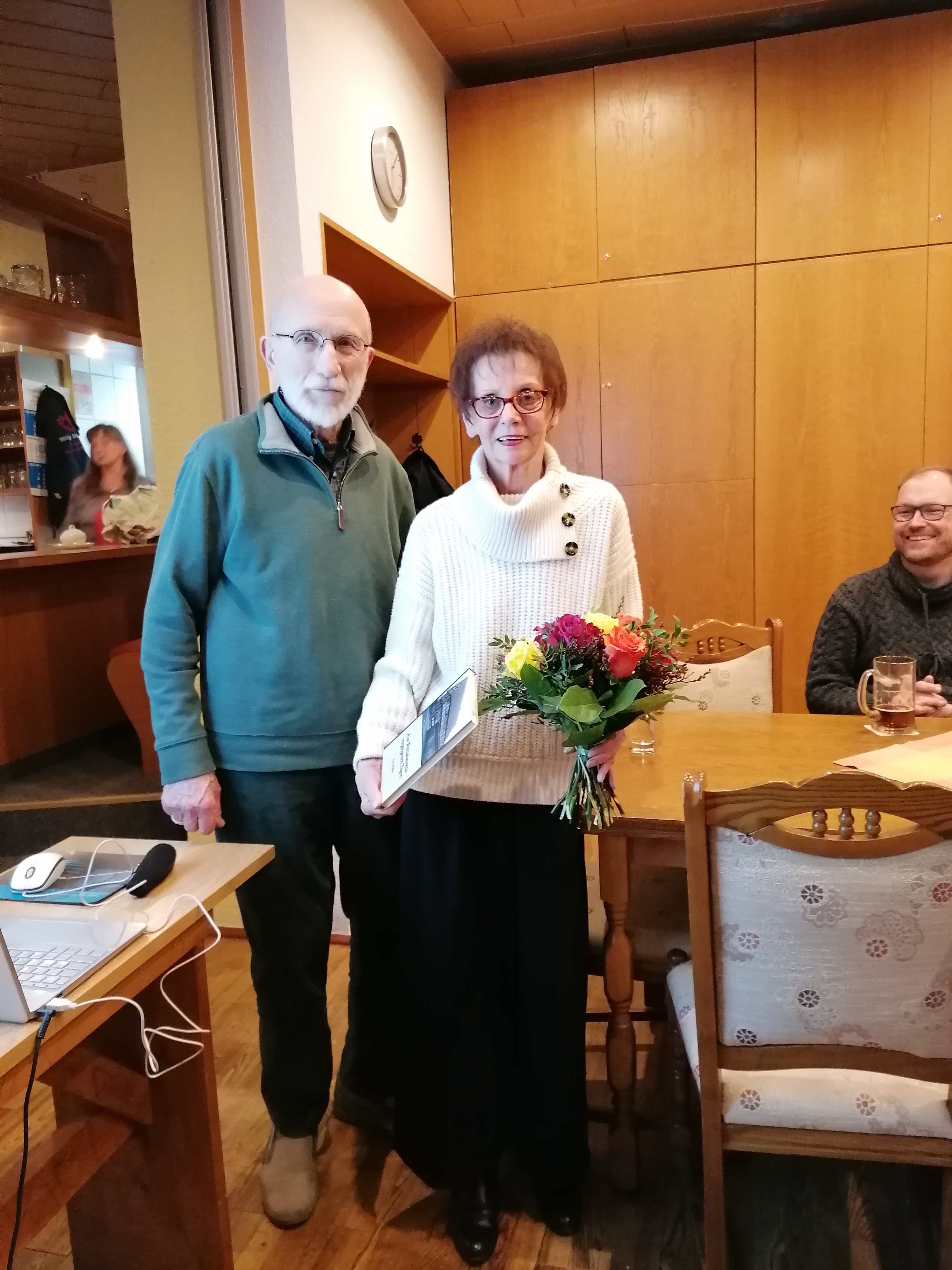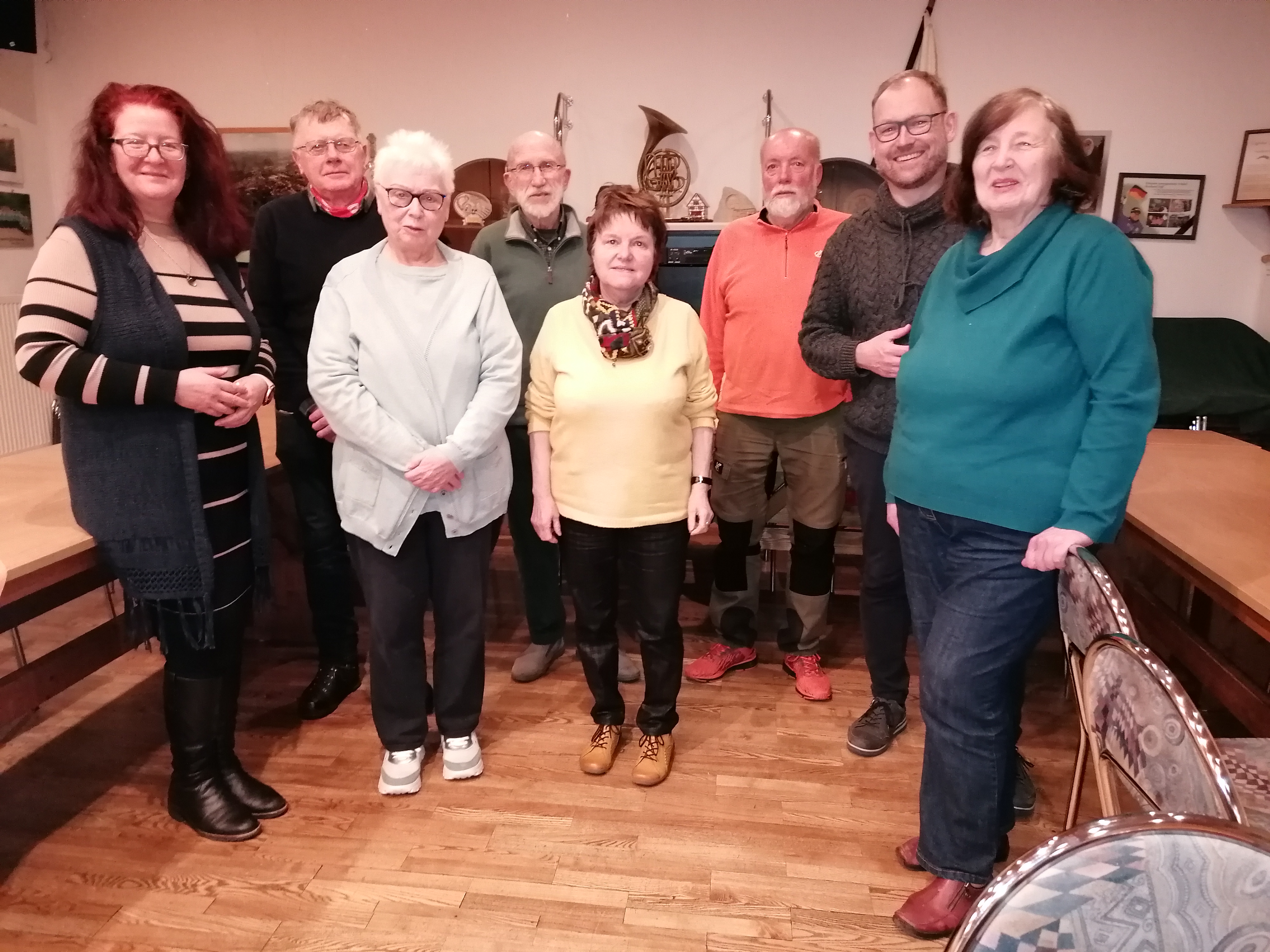 | Von links nach rechts: Susanne Ehrhardt ( Vorsitzende neben Dr. Halbig in einer Doppelspitze, neu gewählt), Gerhard Raßbach (Beirat für Denkmalpflege), Erika Heilgeist (Schriftführerin), Dr. Jochen Halbig (Vorsitzender neben Susanne Ehrhardt in einer Doppelspitze), Katarina Mark (Schatzmeisterin), Karl Hauck (Beisitzer), Martin Hildenbrandt (Beisitzer, neu gewählt) und Gudrun Hammel (Beisitzerin) |