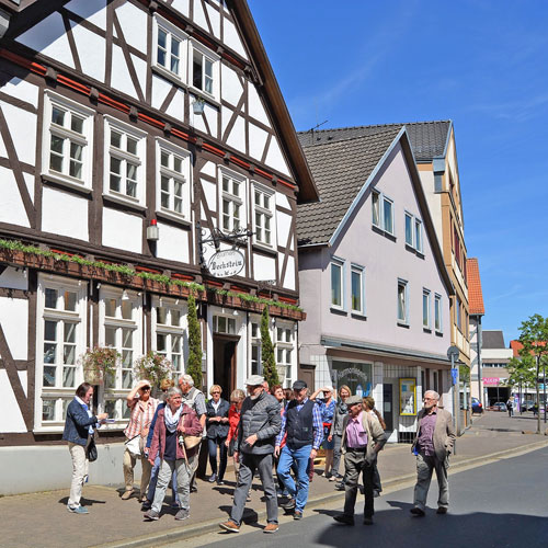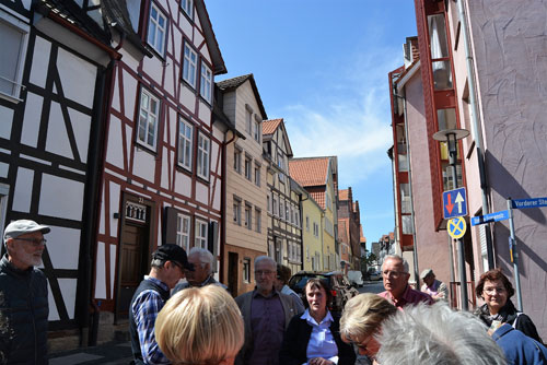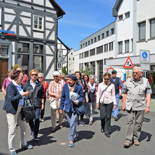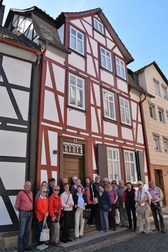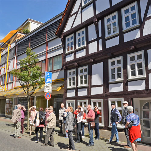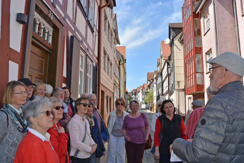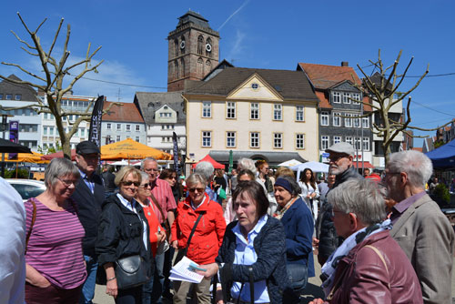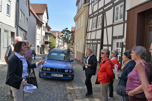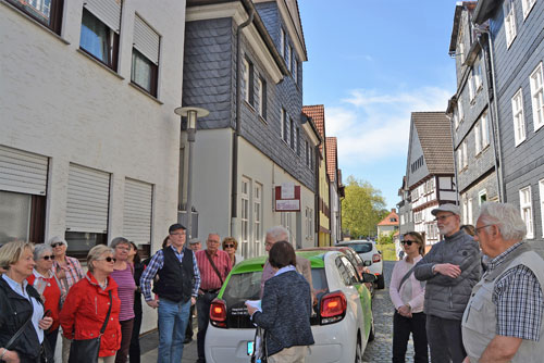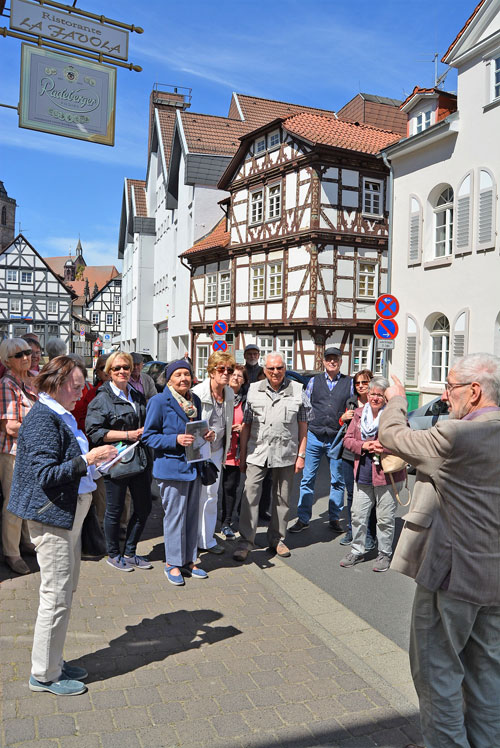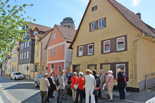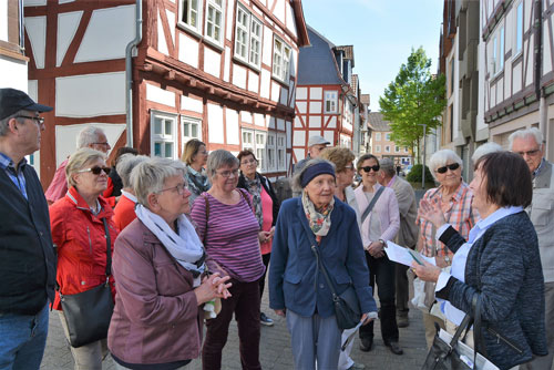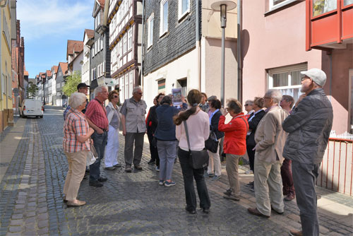 Als Tuchmacherstadt war Hersfeld schon immer bekannt. Aber es war auch eine Stadt der Schneider. Das wurde bei einem Rundgang deutlich, an dem auf Einladung des Hersfelder Geschichtsvereins gut 20 Interessierte vom Lullusbrunnen aus in Richtung Hanfsack, Neumarkt, Wallengasse, Linggplatz, Marktplatz, Obere und Untere Frauenstraße „pilgerten“. Sachkundige Stadtführerin war Irmgard Schmidt, die hausnummerngenau erläuterte, in welchem Haus welcher Schneider wie lange gewohnt und gearbeitet hat. 1958 habe es noch 42 Schneidermeister gegeben, darunter sogar einige Schneidermeisterinnen, betonte die Friedloserin, die ihre Zuhörer auch mit den bis 1926 geltenden Zunftvorschriften vertraut machte. Zu den besonders interessanten Örtlichkeiten zählten das Haus Hanfsack 32a, in dem Louis Demme, der Begründer des Stadtarchivs, mit Frau und acht Kindern lebte, das Haus Markt 23, in dem Antonia Huth ihr Handwerk ausübte und natürlich das erst kürzlich renovierte Wohnhaus von Hans Post in der Unteren Frauenstraße 33. Der Klosterschüler Post ist „Herrschfellern und Hergeloffenen“ bis heute nicht nur als gebildeter Schneidermeister, sondern vor allem als legendärer erster „Feuermeister“ bekannt, der mit anderen das Lullusfest reformiert und in seine heutige Form gebracht hat.