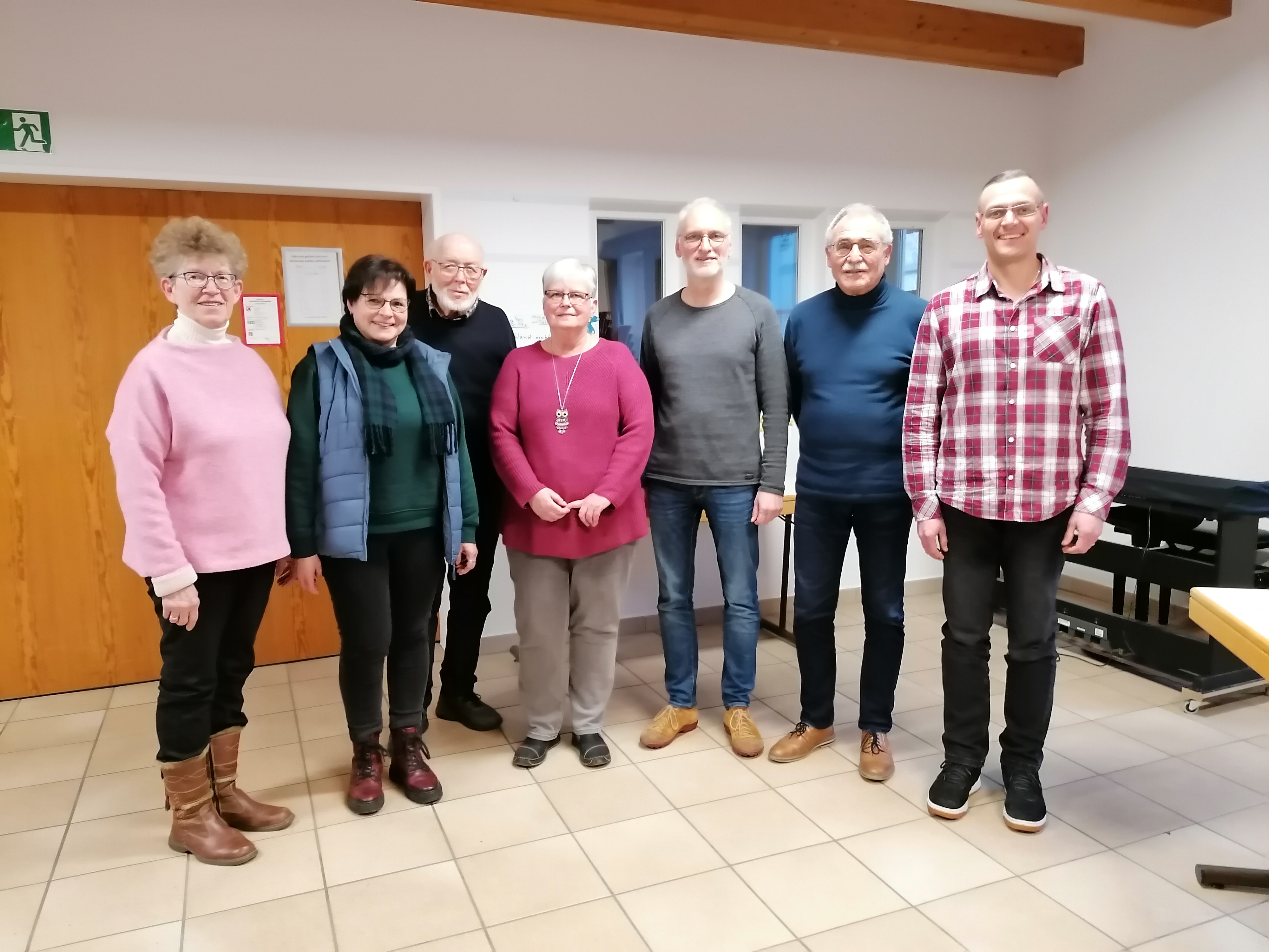 Mitglieder des neugewählten Vorstands des Geschichtsvereins Altkreis Rotenburg und geehrte Mitglieder. Von links nach rechts: Anneliese Krauß-Neumann, Ulrike Bauer-Both (Beirat), Hans Helmuth Schweitzer (Beirat), Sabine Sindermann (2. Vorsitzende und Schriftführerin), Andreas Rehs (Stellvertretender Vorsitzender), Reinhold Salzmann (Schatzmeister) und Martin Ludwig.