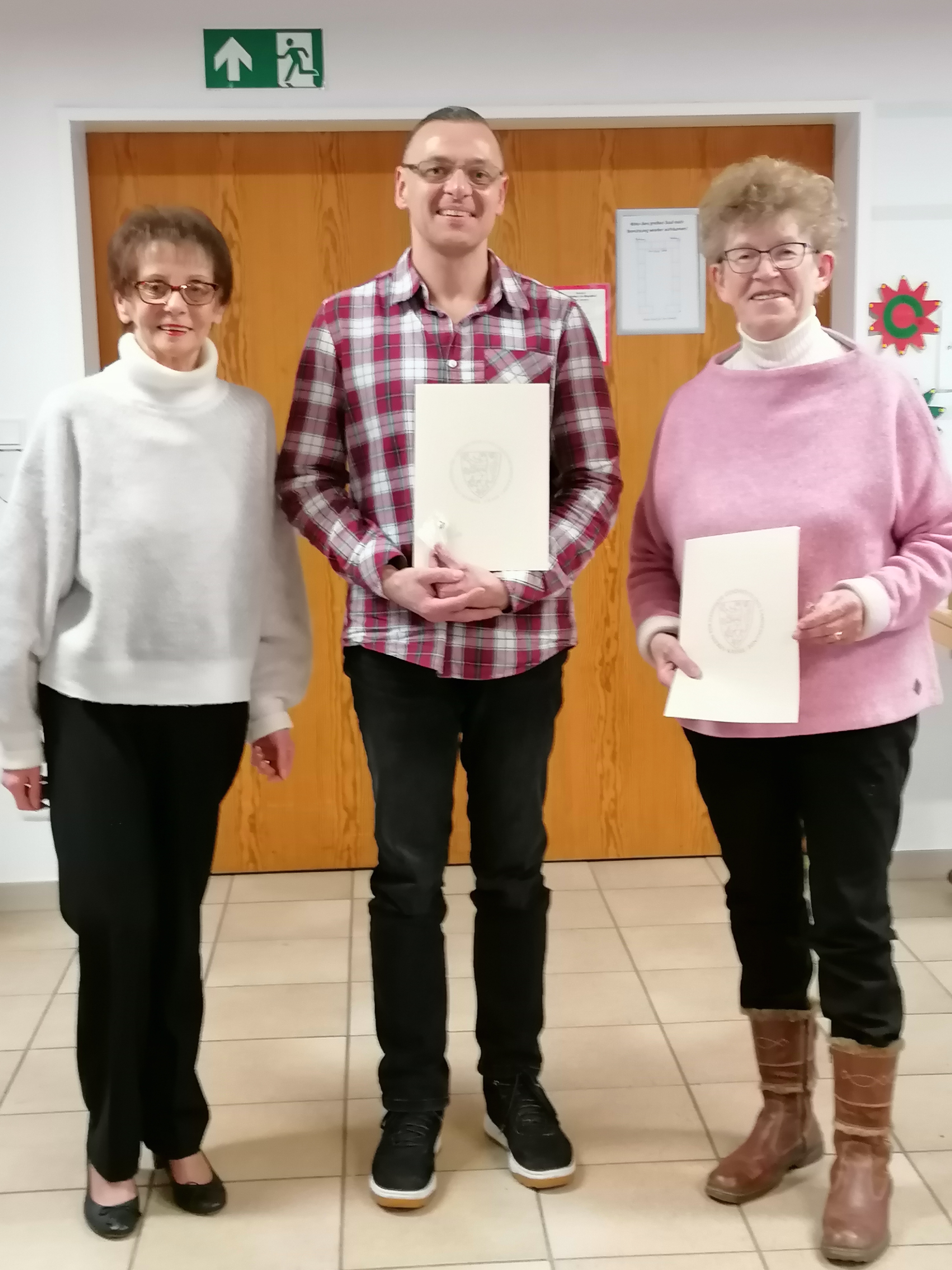 Von links nach rechts: Ruth Piro-Klein, stellvertretende Vorsitzende des Vereins für hessische Geschichte und Landeskunde, mit den auf der Jahreshauptversammlung des Geschichtsvereins Altkreis Rotenburg geehrten Mitgliedern. Martin Ludwig wurde für 25 Jahre Mitgliedschaft geehrt. Anneliese Krauß-Neumann nahm für ihren Ehemann Ernst-Dieter Neumann die goldene Urkunde mit Nadel für 40 Jahre Mitgliedschaft entgegen.